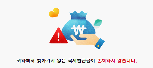 국세환급금이 없을 경우 아래와 같이 「존재하지 않습니다」라고 표시됩니다.