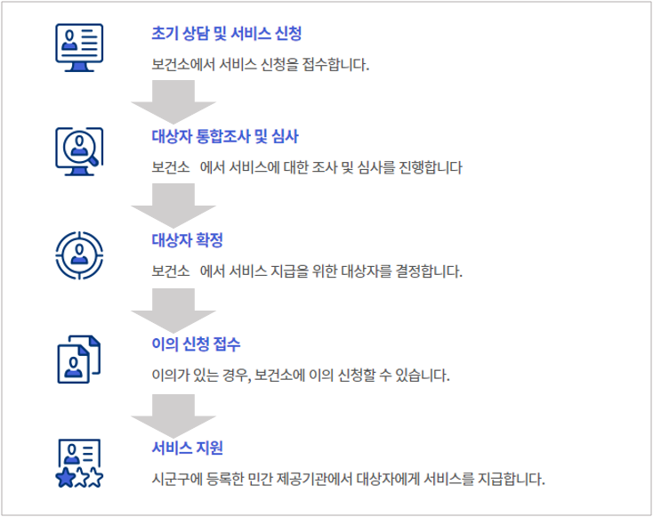 - 서비스 지원과 카드신청을 함께할 경우 각 시・군・구(보건소)를 통해 서비스 지원 신청 가능(ʻ국민행복카드 상담전화를 위한 개인정보 제공 동의서ʼ 작성 후 제출) 합니다.