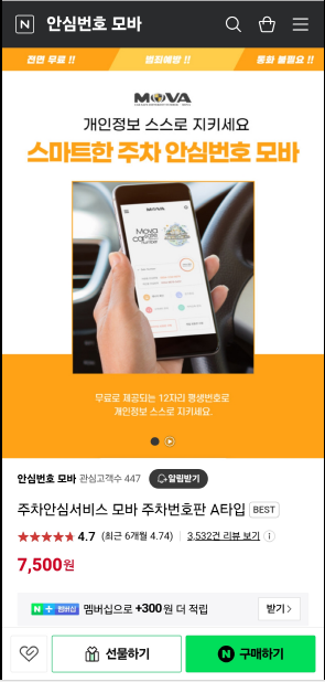 1. 주차안심서비스 모바 주차번호판 주문 구매연결