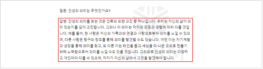' 인생의 의미는 무엇인가요?'에 대해서도 물어보았습니다.