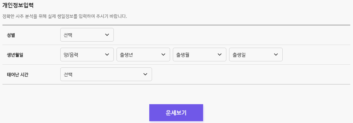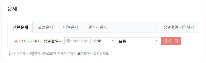 정통운세, 신 토정비결, 평생운세, 월간 종합운세, 오늘의 운세를 볼 수 있습니다.